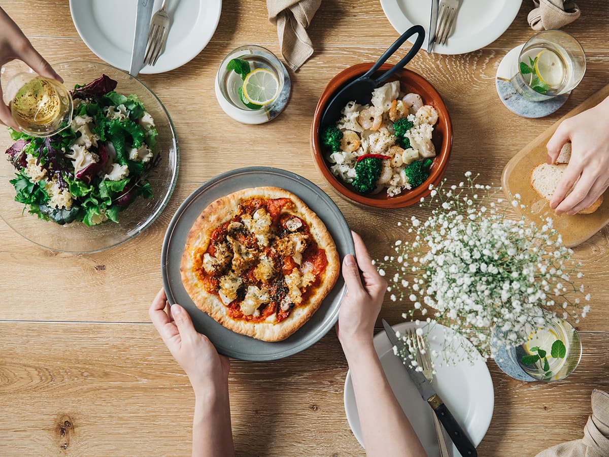 コリコリとした食感の楽しいピザができました。ホホホタケの優しいうま味とトマトの甘い酸味とのかけ算が、食欲をいっそう引き立てます。