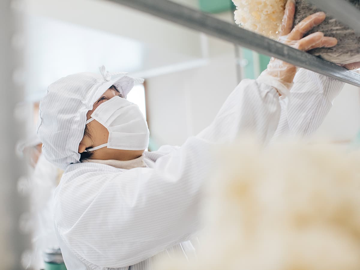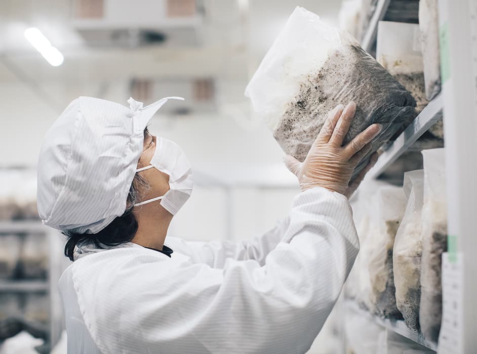 何よりも食べた人たちが笑顔になること。そのために私たちは常に品質向上を模索し続けています。色やカタチの美しさ、日持ちの長さ、栄養価の高さ、そしておいしさ。様々な側面から、より良いはなびらたけの栽培に努めています。